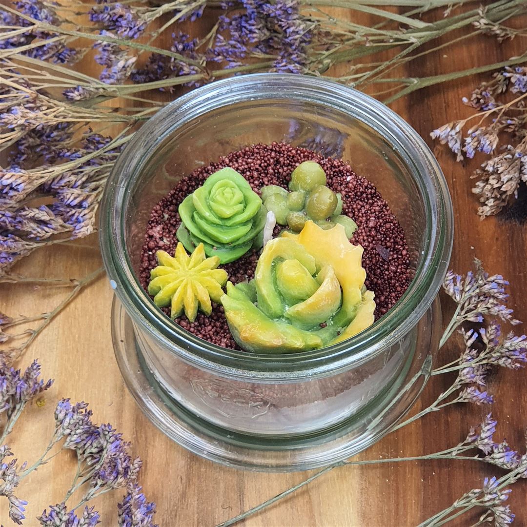 In diesem 2-stündigen Kurs lernen die Teilnehmer Schritt für Schritt, wie man mit Sojawachs, Farbpigmenten und ätherischen Ölen realistische Kakteen und Sukkulentenformen